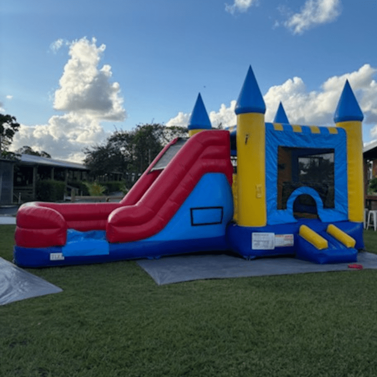 - OCCUPANCY: A maximum of 5-6 kids of equal size at one time for bounce houses, and 1 person at a time for slides is what most inflatable manufacturers recommend.